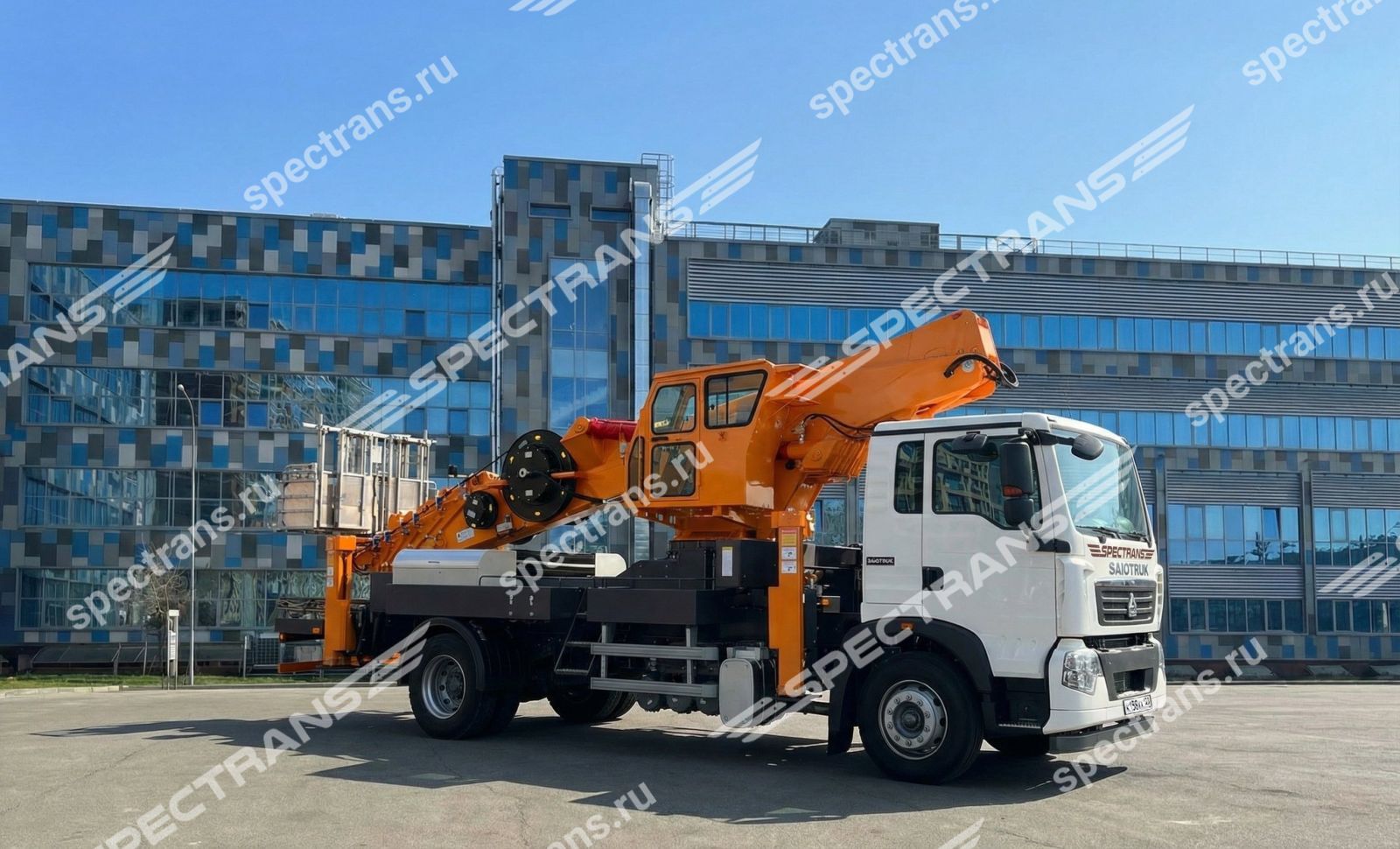 Автовышка позволяет выполнять работы на высоте до 45 метров. Данная установка - промышленный, очень маневренный подъемный механизм, предназначенный для выполнения широкого спектра работ. Преимущество её в том, что четырех-секционная телескопическая стрела позволяет точно и аккуратно производить работы по краям зданий и сооружений.
